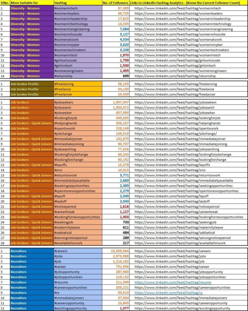 Below is the list of hastag recruiter or sourcer can use for target search or job posting