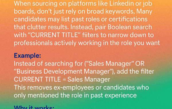 Tip 66: Use Boolean search with “Current Title” filters for precision When sourcing on platforms like LinkedIn or job boards, don’t just rely on broad keywords. Many candidates may list […]