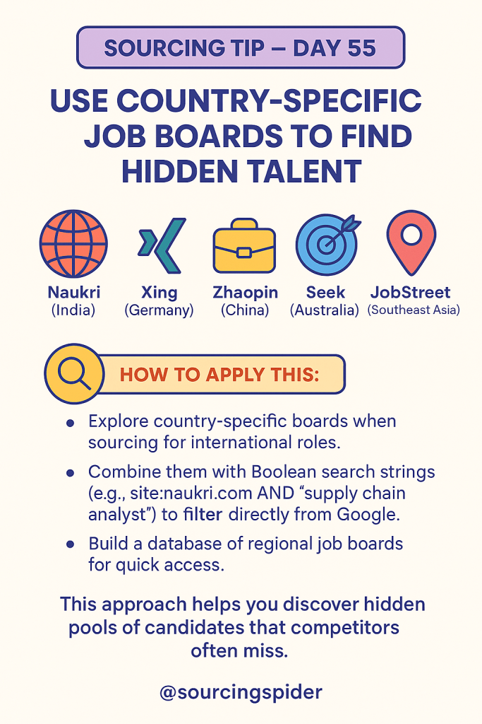 #SourcingTip- Day 55 – Use Country Local Job Boards.