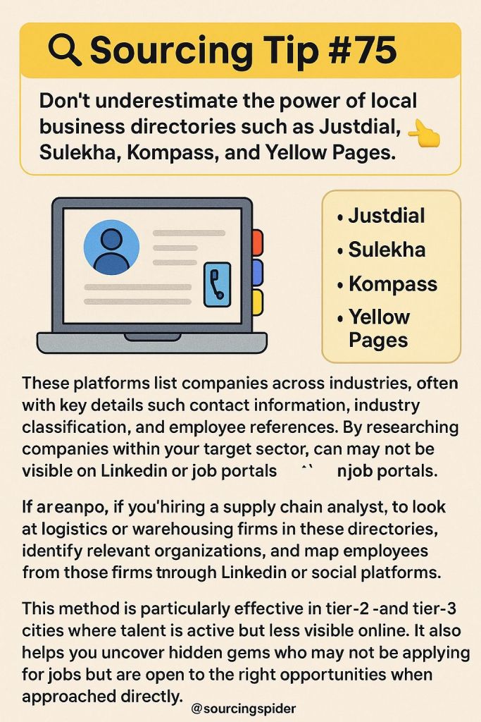 ๐ก Sourcing Tip #75: ๐ Donโt underestimate the power of local business directories such as Justdial, Sulekha, Kompass, and Yellow Pages. These platforms list companies across industries, often with key […]
