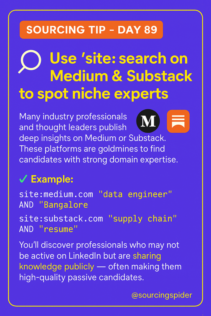 🔍 Tip 89: Use “site:” search on Medium & Substack to spot niche experts