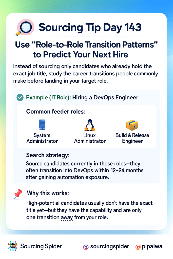 🎯 Sourcing Tip Day 143: Use “Role-to-Role Transition Patterns” to Predict Your Next Hire